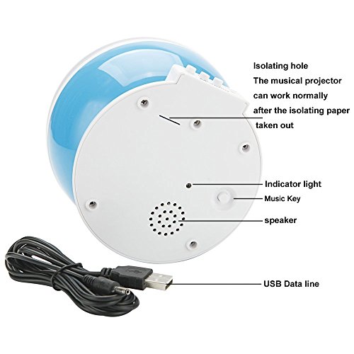 -. Feature : INDOOR DECOR -- For wedding, birthday party, and festival celebration or any occasion you want as a decorative night light, creating a special and romantic atmosphere in your bedroom or other indoor use. / STAR PROJECTOR -- The stars lamp were cast on the ceiling when the light on, showing an unforgettable night you can share with you family or friends. With removable white dome, you can operate it as a night light or projection show of the moon and stars. / THREE BUTTONS -- Customize the night light in your style with 8 modes. Button A shows steady warm white light; B changes the colors from one to multiple colors; C rotation switch, press again to turn it off. / MUSIC-- The muti-color Rotating led light have12 different song,helpful for baby sleep. / PROMOTE SLEEP -- Get closer to the moon and stars, quiet and smart, and give your child a good night's rest with this night light for kid's room. What is more, it can help parents coax the baby to sweet sleep.