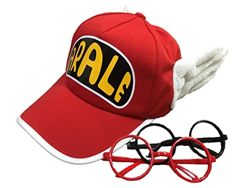 セット内容:アラレちゃん風帽子、メガネ黒赤2個セット、オリジナルメガネ用巾着袋
