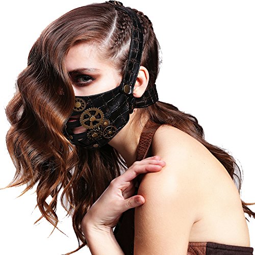 -. Brand : STEELMASTER -. Color : Black -. Department : unisex-adult -. EAN : 0714485896651 -. Feature : Solid black leather simulation and skeleton head bump nail decoration into the hand of effect. / With elastic rope hang on the ear. / High-grade metal chain hanging type +D buttons. / Style:Steampunk,gothic,Holloween / Size:Free -. IsAdultProduct : 0 -. PackageQuantity : 1 -. ProductGroup : Apparel -. ProductTypeName : ADULT_COSTUME -. Size : Free -. Title : Steampunk Mask Metal Gear Holloween Cosplay Black Leather Mask -. UPC : 714485896651
