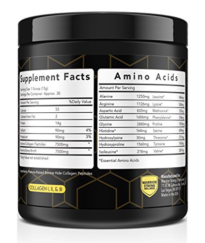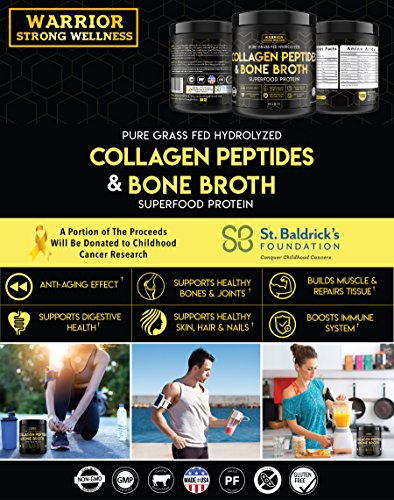 Isn't It Time To Raise Your Collagen Levels Start Feeling Looking Great By The Day? Is your diet poor in nutrients, as your busy lifestyle does not always leave you time to prepare healthy, nutritious meals? Are you looking for a natural way to boost collagen levels in your body to enjoy your skin replenished, your hair shiny and your nails stronger and healthier? Well, we have the answer! Warrior Strong Wellness is offering you with a PURE POTENT collagen peptide bone broth formula that will help your body stay young, healthy and in top form! Get The Strong, Toned Body You Have Always Dreamt Of! Worry no more about joint problems, pain caused by injured muscles or stiffness, discomfort and numbness induced by limited workout. This potent Collagen Peptides Powder will support your joints, ligaments and tendons and it will help your muscles recover, so that you can keep up with your busy schedule PAIN-FREE and with raised ENERGY LEVELS! An excellent muscle booster, this collagen peptide and bone broth supplement will help you get the toned, lean muscles that will make heads turn! A Natural Beauty Booster! You can now get the perfect complexion, luscious hair and nails that never break or peel off! Our Collagen protein powder will support the growth of new, healthy cells, making an all natural shield against ageing process and helping you look younger by the day! Absolutely Safe Easy To Use! Our unflavored Collagen Peptides powder can be added to practically any liquid, or even to soups, sauces or oat meals, to provide your body with the multiple collagen hydrolysate benefits! So, Don't Waste Another Minute! A portion of the proceeds from your purchase are given to childhood cancer research to St. Baldricks Foundation. 0 |