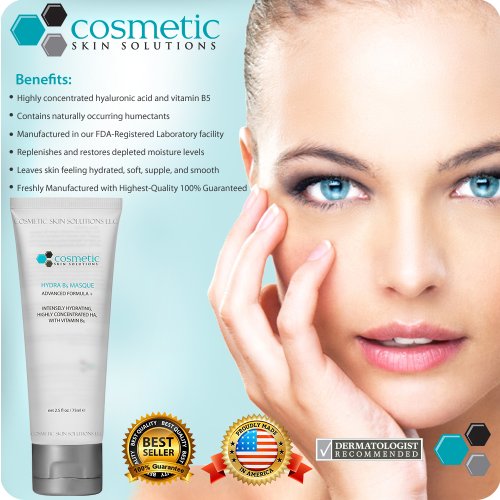 -. Feature : MOST EFFECTIVE AND INTENSELY HYDRATING VITAMIN B5 MASQUE!-You're looking at the most effective hyaluronic acid Vitamin B5 masque designed to replenish depleted moisture levels associated with dry, cracked, dehydrated, or stressed skin. LOOK NO MORE, this morning and evening use B5 Masque is a must for your skin care regimen! / HIGHEST AMOUNT OF HYALURONIC ACID (HYDRATING INGREDIENT) AVAILABLE!-This Vitamin B5 Masque supplies the highest amount of hyaluronic acid at 1.0%. This is essential to restoring the skin's optimal moisture balance by INSTANTLY combining & retaining moisture to the skin designed for ALL SKIN TYPES! / INSTANTLY RESTORES DEPLETED MOISTURE LEVELS!-Hyaluronic acid combined with a selective group of essential co-hydrating ingredients provides the skin with a MAXIUM AMOUNT of moisture! / BEST VALUE AND LARGE SIZE TUBE 2.5 OZ / 75 ml AT A REASONABLE P.R.ICE!- Don't settle for overly P.R.Iced, small, or ineffective masques that don't have essential hydrating ingredients. Get OUR specialty intensely hydrating B5 Masque at a FRACTION OF THE COST, with MORE VALUE & INGREDIENTS YOUR SKIN NEEDS for effective hydrating. / PRODUCED IN OUR FDA REGISTERED LAB WITH STRICT FDA GUIDELINES!- You're getting the BEST in skin care from a reputable company! Reverse dry, cracked, dehydrated, or signs of stressed skin with our high quality B5 Masque, 100% SAFE & EFFECTIVE, NO PARABENS, Not Tested on Animals. What are you waiting for?