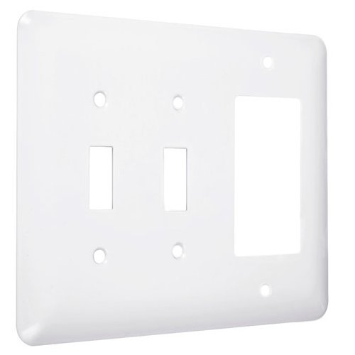 Hubbell-Bell WRW-TTR Maxi/Princess Metallic Wallplate with Two Toggle, One Decorator/Rocker, Three Gang, White Smooth