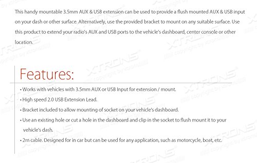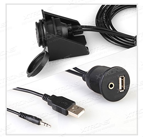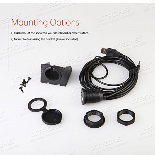 XTRONS Car Dashboard Flush Mount USB 2.0 3.5mm AUX Socket Extension Lead Panel Cable
