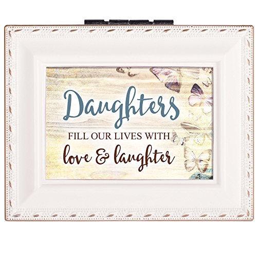 Daughters Fill Lives With Love Ivory and Gold Trim Tiny Square Keepsake Box