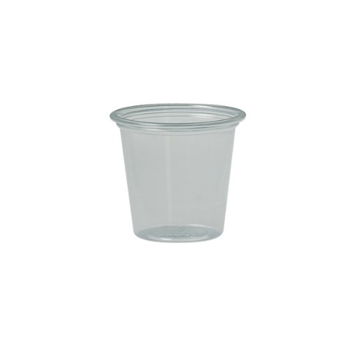 This SOLO T125-0090 disposable 1.25 oz. souffle portion cup is made of clear plastic for strength and resistance to shattering. It is suitable for measuring and serving dressings, condiments, gelatins, and other food items. This portion cup is clear for visibility of contents, 1.6" high, and has a 1.8" top diameter. It is compatible with a SOLO PL1-0090 lid (sold separately).