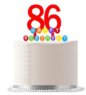 Item#086WCD - Happy 86th Birthday Party Red Cake Topper & Rainbow Candle Stand Elegant Cake Decoration Topper Kit