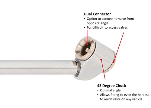- Extra long fixed chuck for maximum control when attaching to the valve and accessibility to all valve