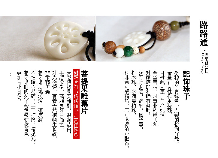 每一枚藕片都是原色的菩提果雕刻,无漂白,无异味,佩戴更放心。