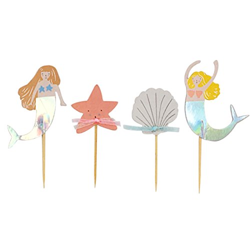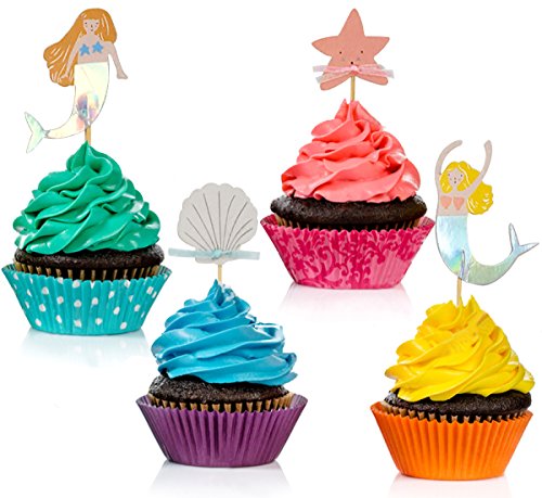 Lolipapa Cute Mermaid Starfish Shell Cupcake Cake Toppers Picks for Kids Birthday Party, Baby Shower (Pack of 24pcs)