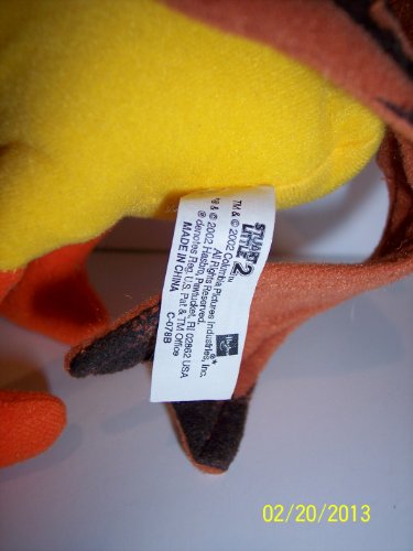 -. Binding : Toy -. Feature : Talking Plush -. IsAdultProduct : 0 -. Label : COLUMBIA PICTURES HASBRO -. Manufacturer : COLUMBIA PICTURES HASBRO -. ProductGroup : Toy -. ProductTypeName : TOYS_AND_GAMES -. Publisher : COLUMBIA PICTURES HASBRO -. Studio : COLUMBIA PICTURES HASBRO -. Title : Margalo Talking Plush From Stuart Little 2