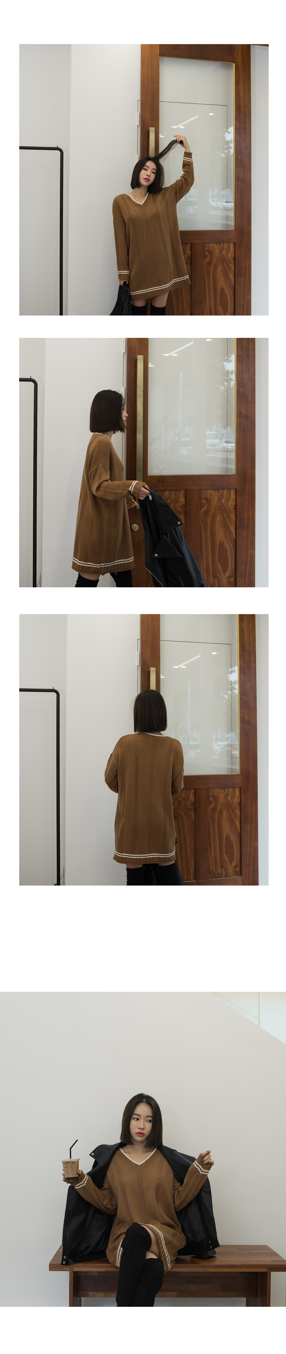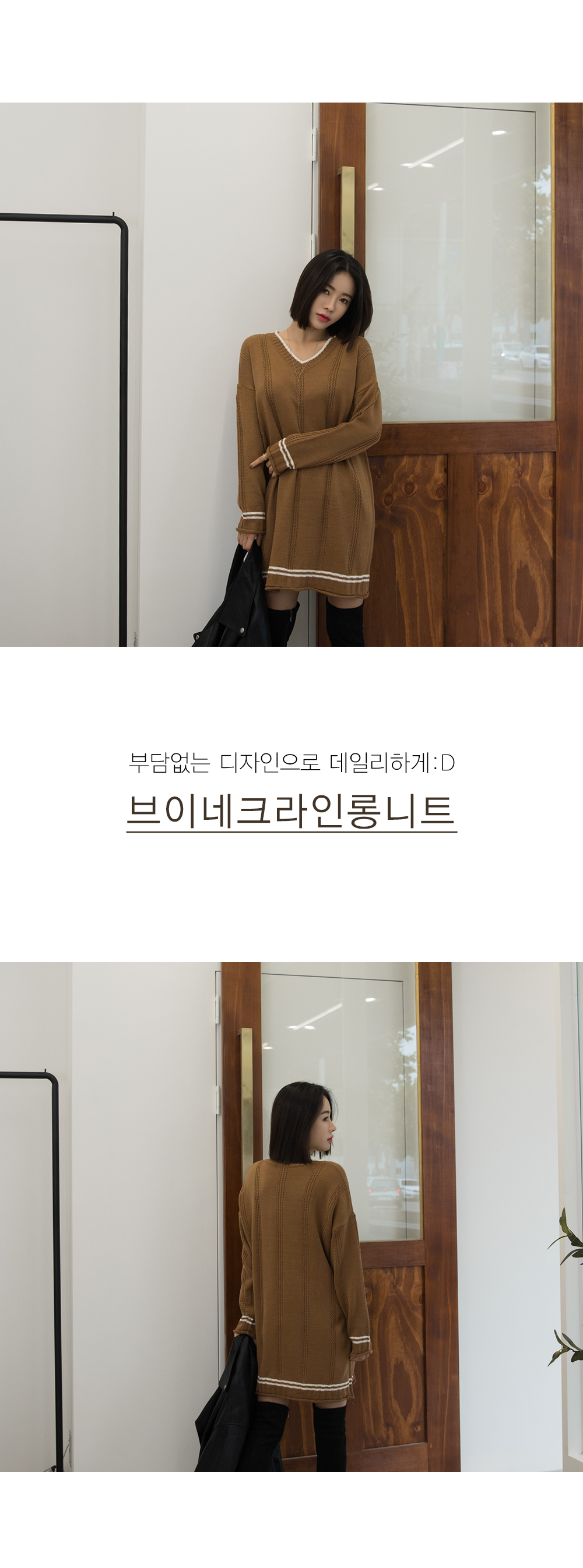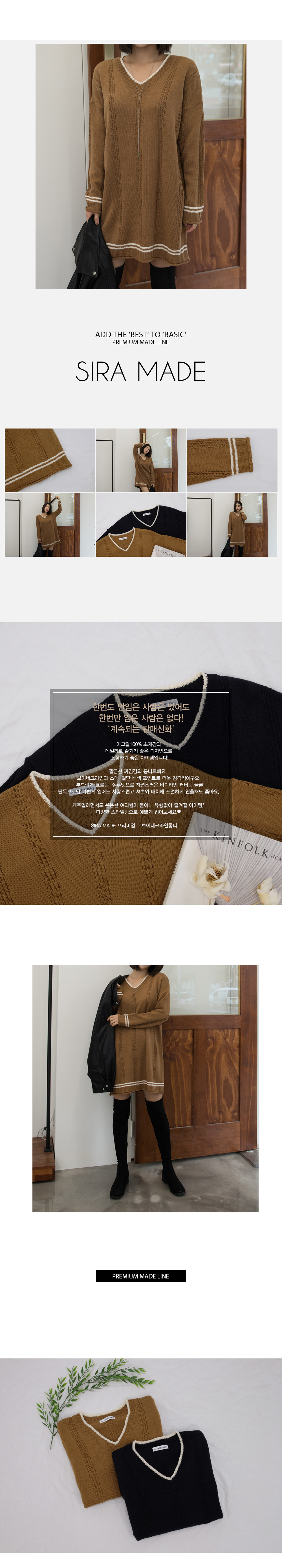 브이네크라인과 소매, 밑단 배색 포인트로 더욱 감각적이구요.