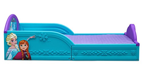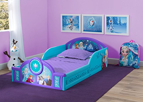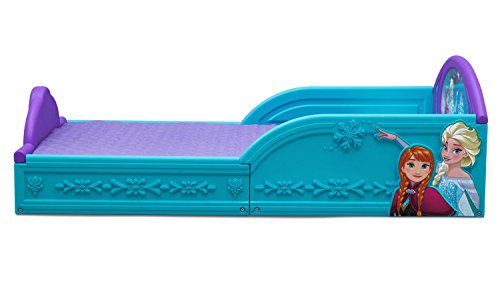 Studio : Delta Children Publisher : Delta Children Binding : Baby Product Product Description Transition their space from a nursery to a toddler room with the perfectly sized Frozen Deluxe Toddler Bed from Delta Children. Featuring three-dimensional floral garland paired with colorful decals of Anna, Elsa, and the whole Frozen cast, this study toddler bed creates a comforting environment that promotes a sound sleep. The Frozen Deluxe Toddler Bed will also keep your little big kid secure throughout the night, its attached guardrails and low mattress height allows your child to enter and exit on their own. 0