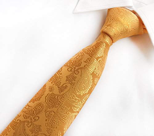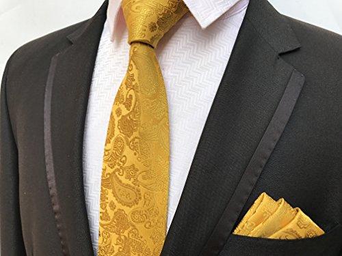 * Go bold and give your outfit a dash of colour with a patterned number from our Paisley tie collection. Taking inspiration from the East, this attention-grabbing look is the perfect way to make a statement at any special occasion. * Our own brand Paisley ties come in a variety of bold colours, such as violet, gold and red, each made from care-free microfiber with beautiful detailing, whilst those daring enough to pull off two colours will love our fetching two-tone Paisley ties. * Alone, these ties can be a striking addition to your look, but if you want to add some complementary accessories, you can take your outfit to the next level with a matching handkerchief or pocket square.