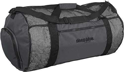 -. Feature : Holds six sets of snorkeling gear with room to spare / Quickly Dry gear and accessories using open mesh material / Large water resistant pocket on the inside of the bag is ideal storage for phones, wallets, etc / Large padded handles and adjustable shoulder strap make transportation easy and comfortable / Measures 27 x 15 inches (lxh)