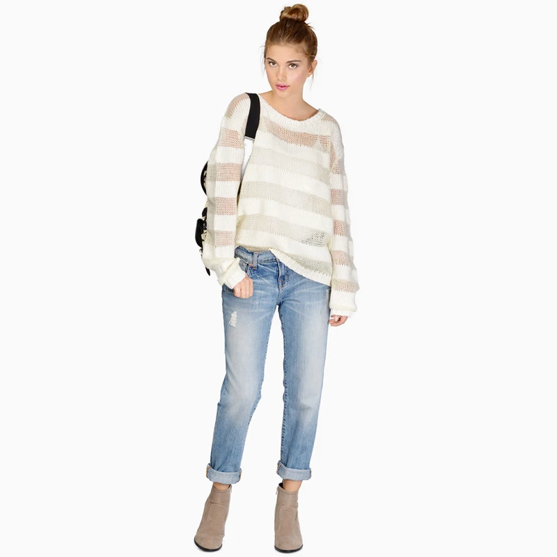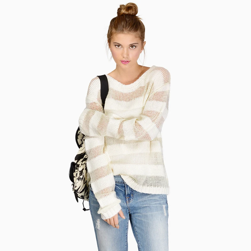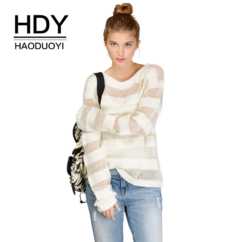 HDY Haoduoyi Color Block Sweet Sweatshirt O-neck Long Sleeve Loose Kintted Casual Tops Autumn Stripe Female Pullover Sweatshirt | |||||||||||||||||||||||||||||||||||||||