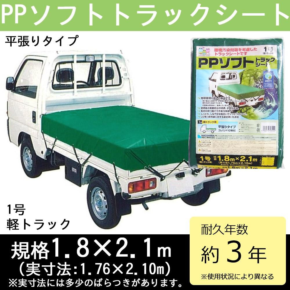 焼却時にダイオキシン類が発生しにくいオレフィン素材のトラックシートです。 製造国:日本 素材・材質:シート本体:ポリプロピレンハトメ:アルミニウム(刻印有り)周囲ロープ:ポリプロピレン 商品サイズ:約1.8m×約2.1m 仕様:■カラー:グリーン■耐久年数:約3年※使用条件により異なる 付属品:ゴムバンド10本 ※サプライヤー直送品 ご注文後2~3営業日後の出荷となります【商品名】萩原工業 PPソフト トラックシート 1号 軽トラック グリーン 1.8m×2.1m