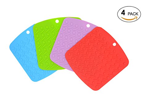 ★ HIGH QUALITY MATERIAL - The silicone trivet mats is made of 100% food grade silicone, FDA approved and BPA free; 4 colors in one set (Red, Blue, Green, Purple).
