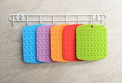 Silicone Trivet Mat by ULee, Multiple Use as Silicone Pot Holder, Spoon Rest, Jar Opener and Garlic Peeler, Non-slip, Durable and Heat Resistant (4, Assorted Color)