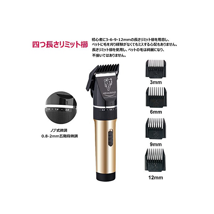 원본상품명:ペット用 バリカン HENGBIRD 犬 猫 トリマ?ト ペットクリッパ? ペットトリミング 新いモデル 充電式 プロペットヘアカッタ? ペット通用 猫シェ?バ? 刈り長さ調整可 低振動 低?音 自宅