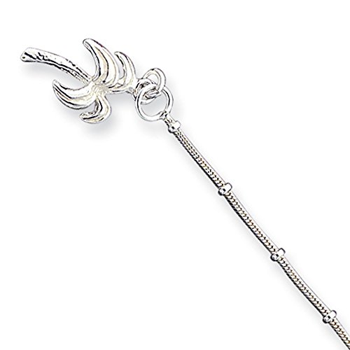Treat yourself or a loved one to a breezy, tropical palm tree that brings to mind a paradise beach getaway. This 12 x 17mm, sterling silver charm dangles from a 1mm width, 9-inch long snake chain accented with 2mm beads that secures to your ankle with a spring ring clasp. Made in ItalyFeature