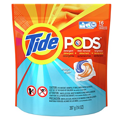 -. Title : Tide Pods - Ocean Mist - Detergent + Stain Remover + Brightener - Works In All Machines - 16 Pacs Per Package - Pack of 2 (32 Pods Total)