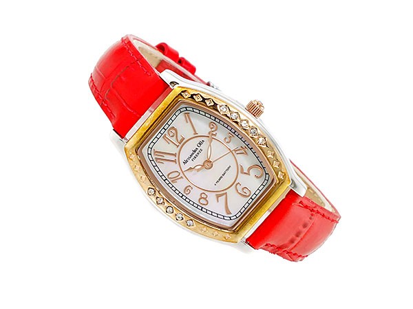 仕様 クオーツ、日常生活防水、4年電池、カラー:シェル(文字盤)、レッド(ベルト)