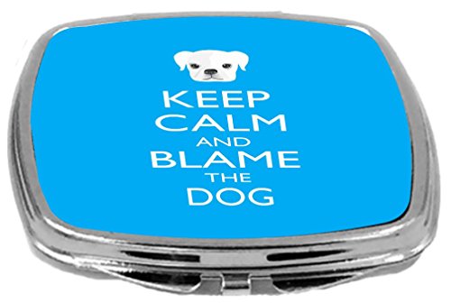 Rikki Knight Compact Mirror, Keep Calm and Blame The Dog, Sky Blue