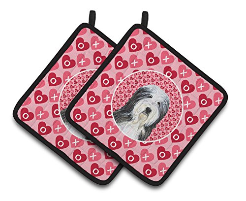 Caroline's Treasures Bearded Collie Hearts Love & Valentine's Day Portrait Pair of Pot Holders SS4497PTHD, 7.5HX7.5W, Multicolor