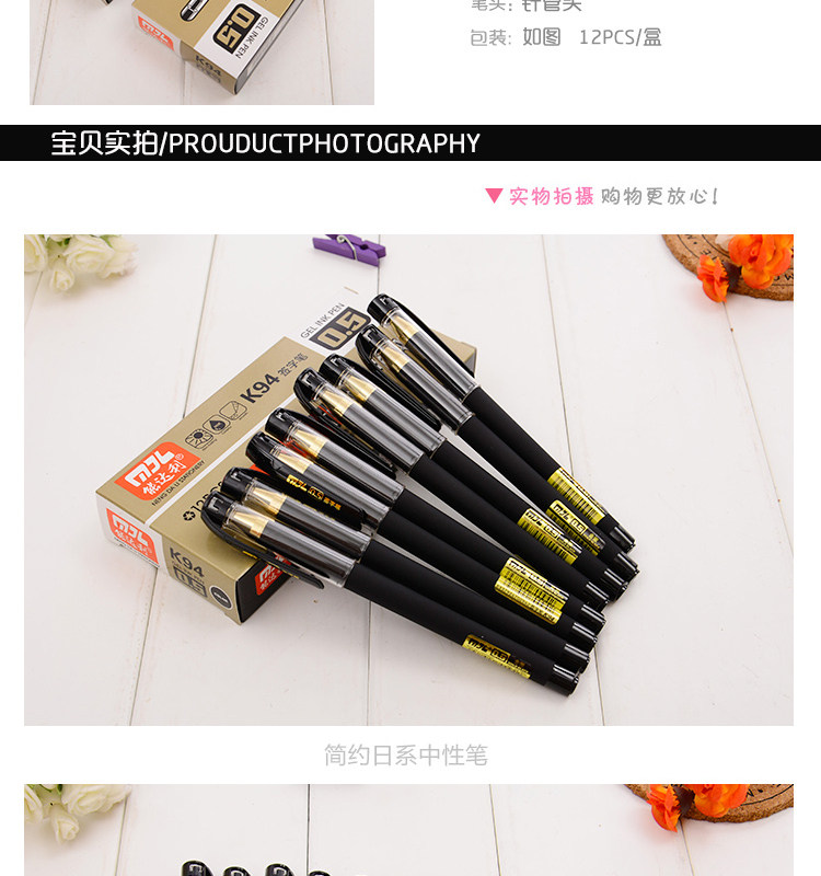 非按压式办公考试专用黑色水笔中性笔葫芦头型