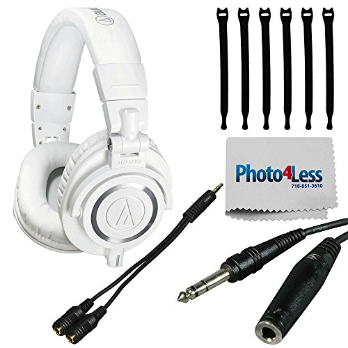 -. Title : Audio-Technica ATH-M50x Professional Monitor Headphones, White + Axis Headphone Splitter + 1/4 inch TRS Headphone Extension Cable + Strapeez + Photo4Less Cleaning Cloth - Top Value Headphone Bundle