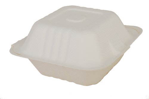 Southern Champion Tray 18905 ChampWare Molded Fiber White Clamshell Container, 6" L x 6" W (Case of 500)