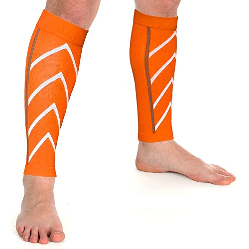 -. Feature : Relief Calf Socks were created with performance in mind. Compression calf sleeves support flow of circulation and reduce swelling. / One Size Fits Most Sold as a pair 72% Nylon, 28% Lycra / 20 - 25 mmHG Color: White, Blue, Black, Pink, Red, Green, Orange Unisex / Can be worn during training or recovery to increase oxygen flow to muscles in the lower leg. / Made with a gradient compression that provides wide ribbing in the front for shin support and tight ribbing in the back for calf support.