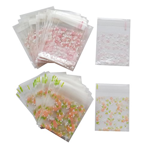 Yunko 200pcs Small Transparent Rose and Pink Heart Cookie Packaging Self-adhesive Plastic Bags for Biscuits Package Cz019