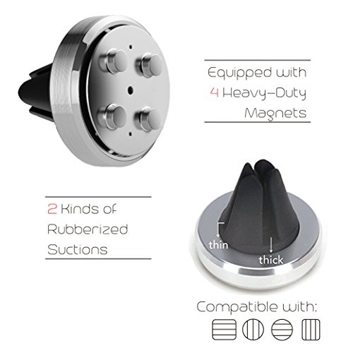 Easy to mount and release: Simply place the mount into the air vent of your car, stick the metal plates onto the back of your phone and attach the device to the magnetic zone. No other tools are necessary. No need to worry the phone will fall off while driving. Easy to disconnect from the mount when you leave the car.