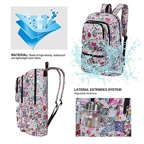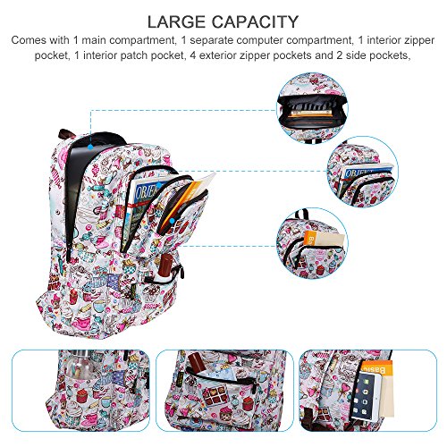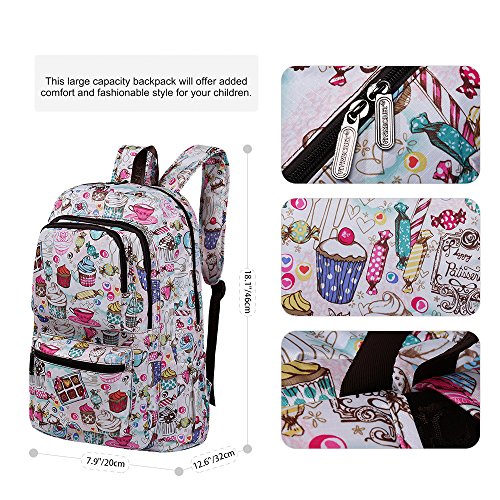 Product Description Information Our Vbiger backpack is equipped with large capacity and multi-use pockets, which make you quick access to your needed things without dumping or digging. These nice ice cream prints make this school bag very fashionable and popular among young students. Besides, you can carry this bag in school or outside for travelling. If you want to know more details or have any questions, please look through the detailed page or contact the customer service. Feature Material: nylon Method of opening: zipper?? Internal structure: 1* main compartment; 1 separate computer compartment; 1 zipper pocket; 1 patch pocket External structure: 4* exterior zipper pockets; 2* side pockets Application: suitable for primary students, middle school students and high school students Function: tear-resistant waterproof anti-theft breathable Size: length 12.6"; width 7.9"; height 18.1" Color: as picture shown Package list: 1* school backpack Notice * The actual color may vary slightly from the online image due to monitor color settings. * Please allow slight measurement deviation for the data. Package Including -1* school backpack 0