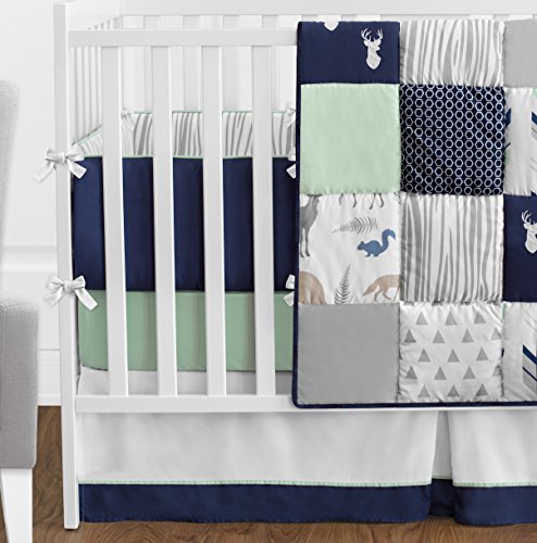 -. Title : Navy Blue, Mint and Grey Woodsy Deer Boys Baby Bedding 9 Piece Crib Set with Bumper