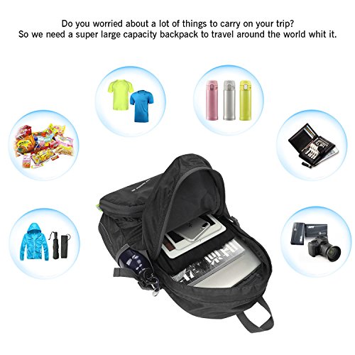 | WALUCAN Lightweight Foldable Packable Durable Travel Hiking Backpack Daypack |