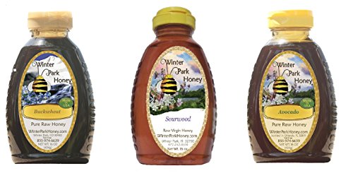 -. Feature : The darkest, healthiest US honey pack with dark Avocado, Buckwheat and Sourwood honey / All pure, natural, raw honey, unfiltered and unheated / Avocado honey from the blossom of Miami avocado threes, very rich in anti-oxidants / A dark harvest of Sourwood honey but with the same amazing syrupy taste as the light / Buckwheat honey is a dark, thick honey rich in antioxidants with a strong molasses taste. Try buckwheat honey for your colds and coughs instead of over-the-counter medicines