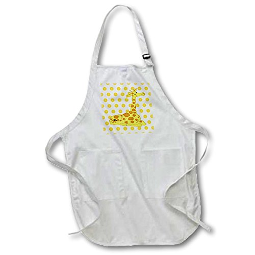 3dRose image of Adorable Sitting Giraffe on Yellow Dots - Full Length Apron, 22 by 30-Inch, White, with Pockets (apr_223386_1)