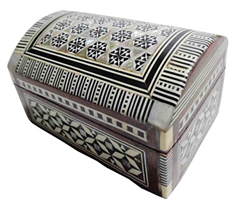Egyptian Handmade Mosaic Inlaid Mother of Pearl Jewelry Trinket Box Velvet 4" (222)