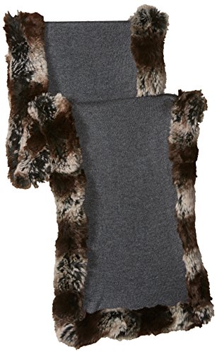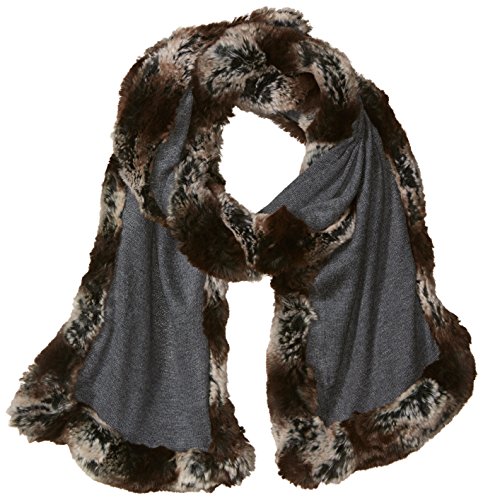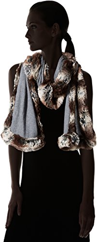 (Badgley Mischka)/Accessories/Scarves/DIRECT FROM USA/Badgley Mischka Women's Knit Wrap Scarf With Faux Chinchilla Trim, grey/grey, One Size