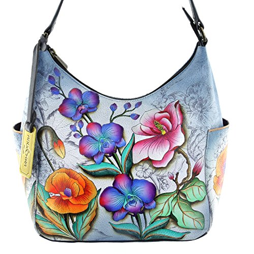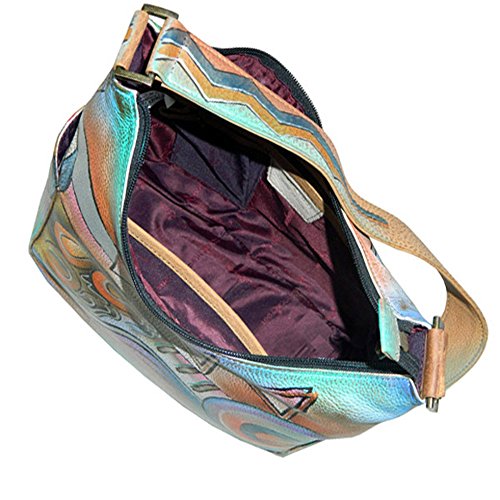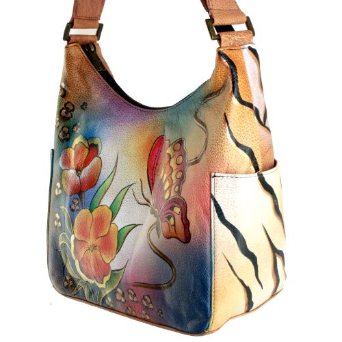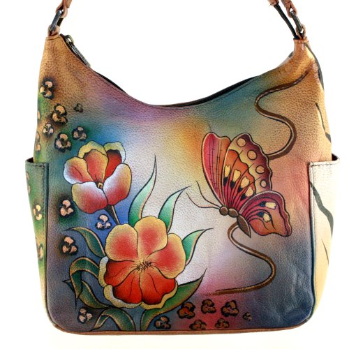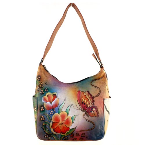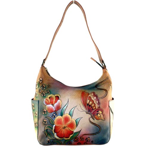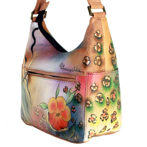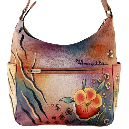 Product Description Why ANUSCHKA? Because she is like no other! One thing is for sure - you can not be indifferent to this brand. This Anuschka 382 Classic Genuine Leather Handpainted Hobo is one-of-a kind hand painted on grained cowhide, each peace sketched, painted in layers to ensurers long lasting quality and then checked and re-checked twice.Vibrant pastel colors, beautiful design, to-quality Anuschka 382 Classic Genuine Leather Handpainted Hobo is created in mind for a girl who loves the uniqueness, easy-going style and to be like no other! The supple pebbled genuine leather bag is finished with stylish top stitching. 0