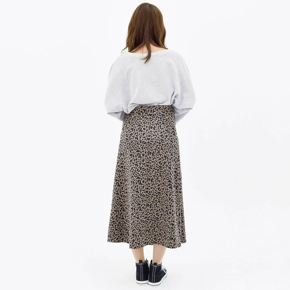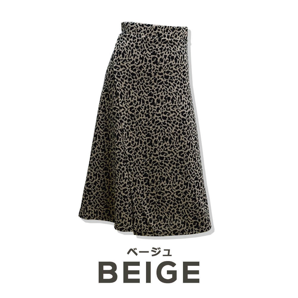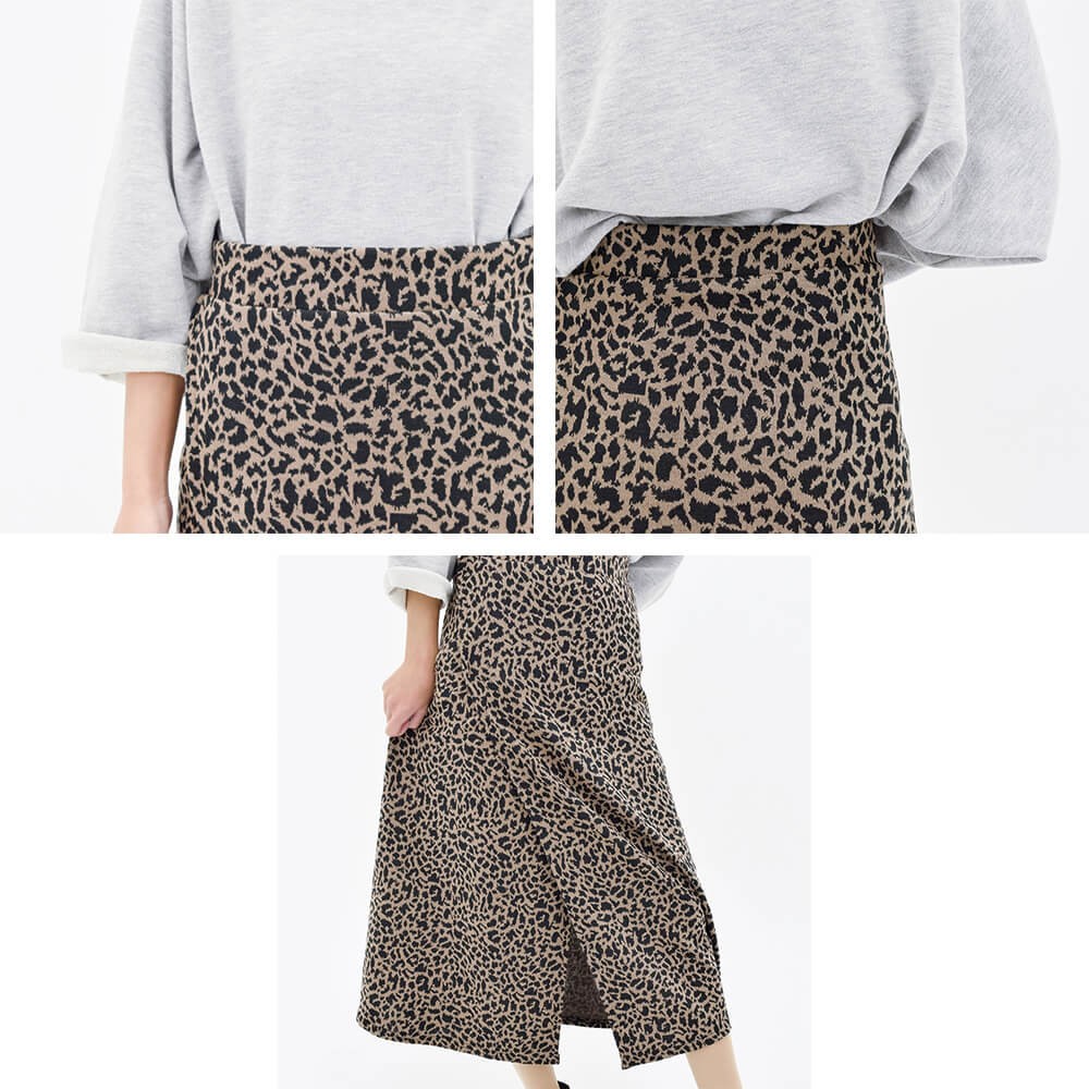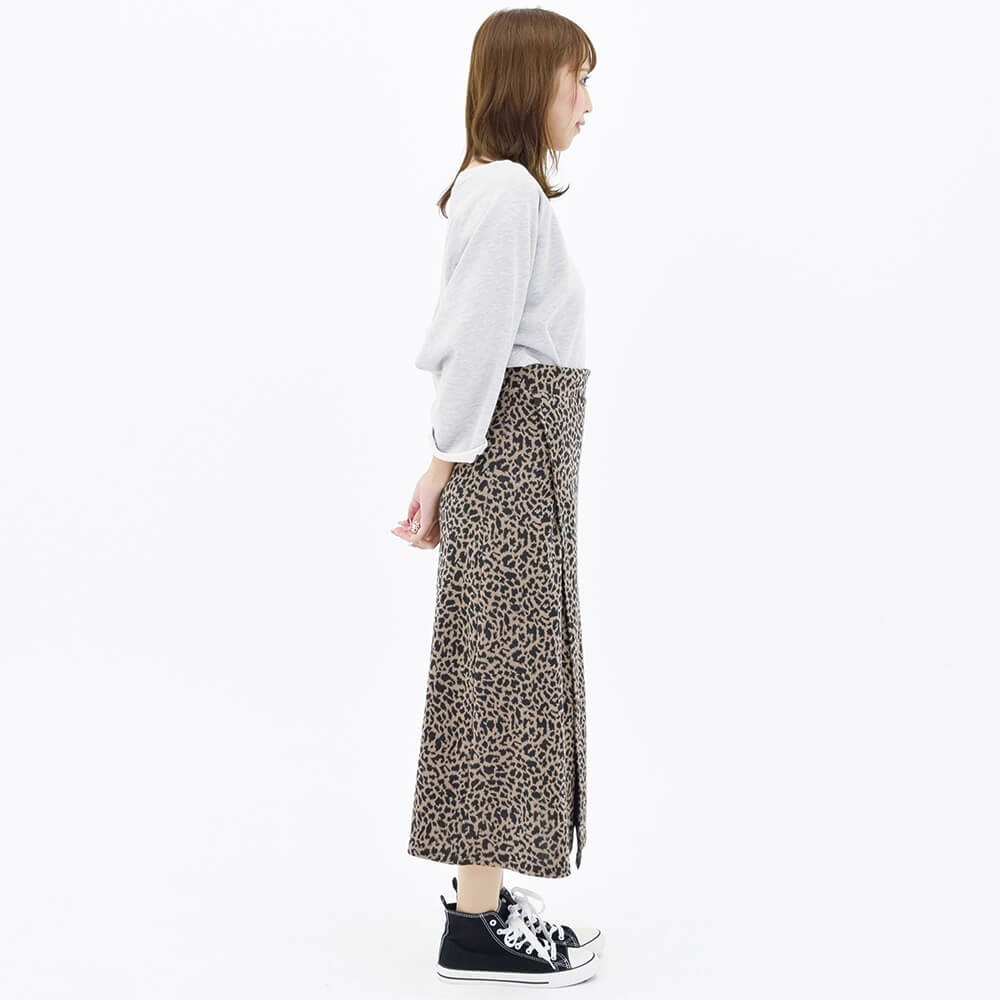 ヒョウ柄でも落ち着きのあるパターン、配色がポイントのタイトスカート。