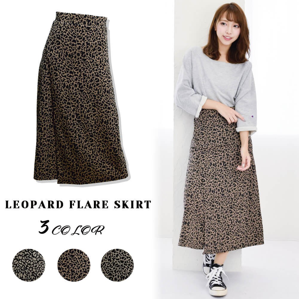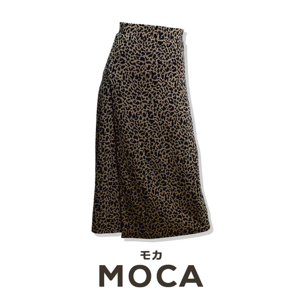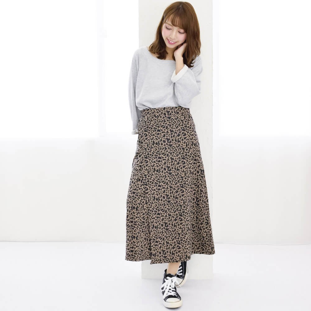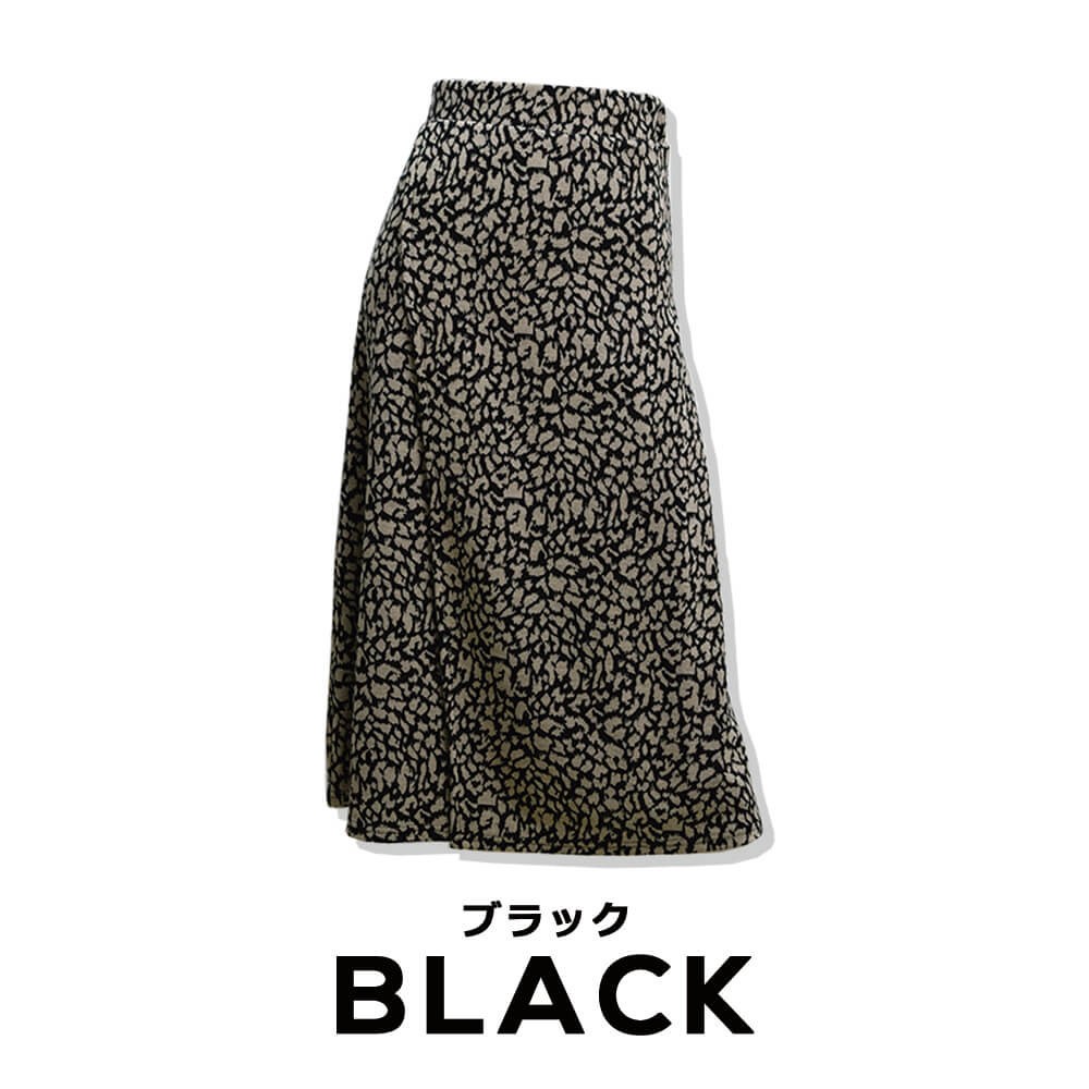 ヒョウ柄でも落ち着きのあるパターン、配色がポイントのタイトスカート。