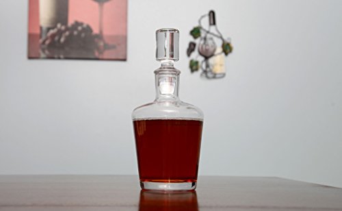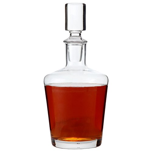 Display your best wine, whiskey or liquor In this beautiful glass decanter. Sophisticated, modern decanter beautifully overlooks your bar, proudly displaying your best wine, whiskey or liquor. Holds up to 26 ounces, at just 8-3/4 inches high with a 4.5-inch square base. Made of lead-free glass. Hand wash recommended. This elegant and sophisticated decanter is ideal for carrying on the rich tradition of Whiskey drinking and enjoyment. Substantial yet balanced with thick glass and topped with a solid glass stopper. Heavy base keeps decanter steady and prevents spills. Solid glass stopper glides smoothly into the narrow neck for an airtight fit that helps keep contents in optimal condition. Modern, simple design is timeless, and will stylishly display and serve your liquor for decades to come. Lead-free glass.Lily's Home® is a registered trademark of Solar Wholesale, LLC. 0 |