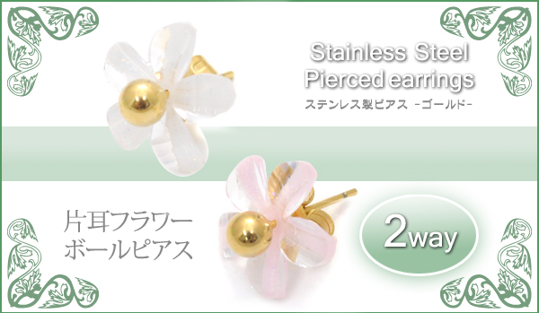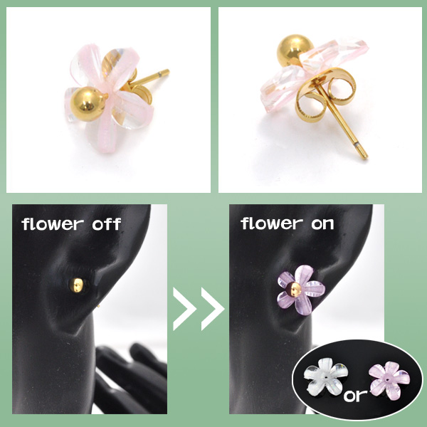 | 華やかなゴールドのステンレス製片耳ボールピアスにフラワーパーツをプラスしました。 シンプルなボールピアスと、フラワーをプラスしたピアスの2WAYでご使用できます。 フラワーパーツは簡単に取り外し可能! お手持ちのピアスとフラワーパーツを組み合わせていただくことも可能です。 気軽に着けられるデザインなので、ファーストピアスにオススメです。 幅広いシチュエーションで活躍してくれます。 ステンレスはアレルギーの心配もいらず、酸化で黒ずむこともありません。 ボールピアスの直径は4mmです。 フラワーの色はホワイトとピンクの2色からお選びください。 ※こちらの商品は、片耳の販売価格となっています。 ペアで購入の場合は、個数を“2”と入力してください。 |