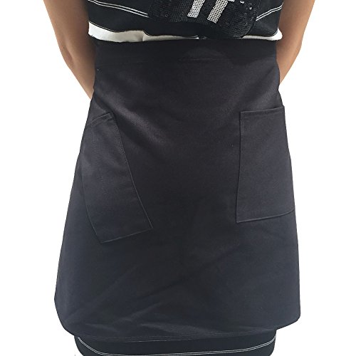 Hense 3 Pockets Waist Apron(Pack of 2) - Restaurant café Half Aprons, Bartender Apron, Money Apron, Check Holder, Black(HSW-070)