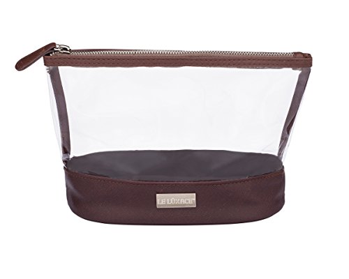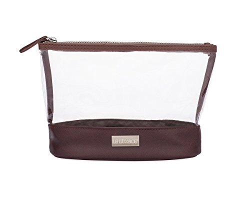 LE LÜXACE Smoky Quartz + Diamond Jetsetter Travel Pouch - Premium TSA Approved Travel Toiletry Bag - Clear and Dark Brown Cosmetic Case With Zipper