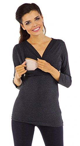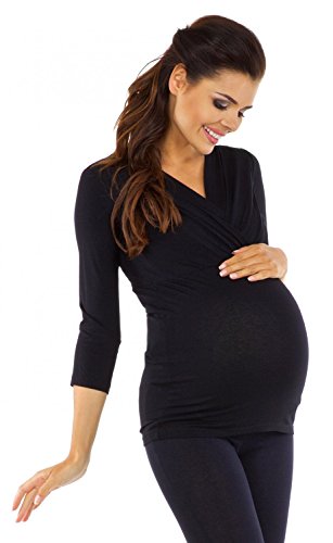 Designed in stretchy jersey the shirt offers a flattering fit at every stage of your pregnancy, and thereafter. The neckline visually slims the silhouette, while the folds under the breasts provide adequate space for the growing belly