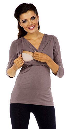 Functional and comfortable nursing shirt / top with short sleeve and V neck with a panels that allow easy breastfeeding.